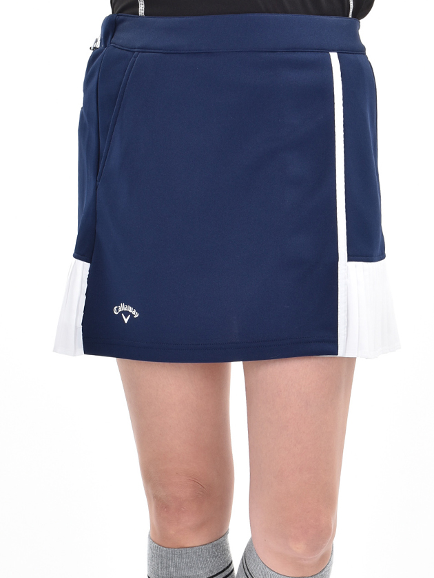 CALLAWAYのタイポグラフィをカモフラージュ調にデザインしたアートワークをプリントしています。プリント生地に無地の異素材プリーツデザインを加えた、デザイン性の高いアイテムです。同素材、同柄のブルゾンとセットアップコーディネートもおすすめです。