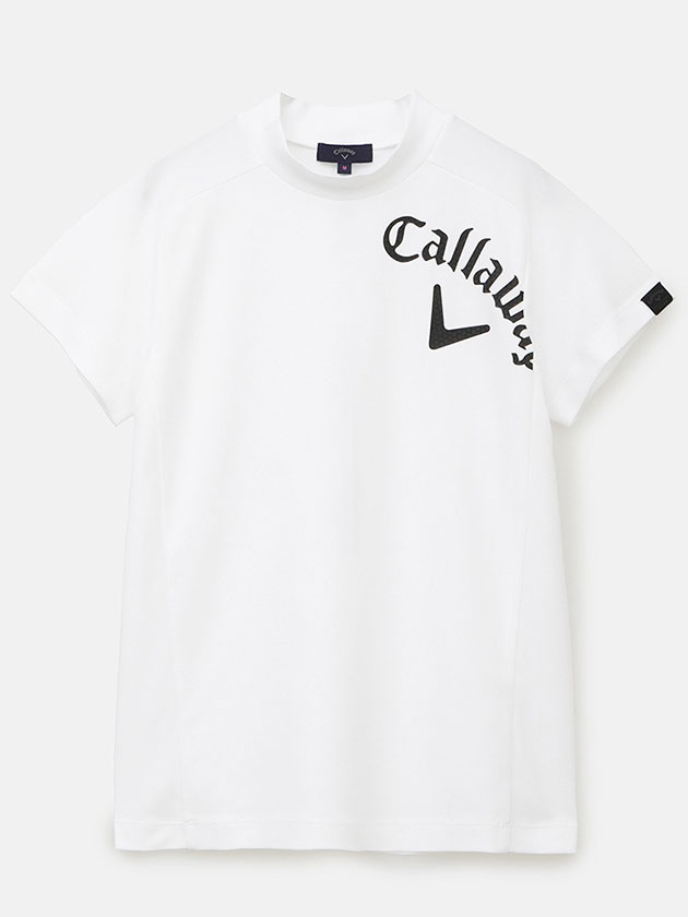 立体感のあるタックカノコ素材に、キャロウェイのビックロゴをプリントしたモックネックシャツです。斜めにロゴを配置しているので、一部のロゴが隠れた新鮮な見た目が特徴です。Tシャツ感覚で着用することができ、スポーティーにもカジュアルにも着こなすことができます。